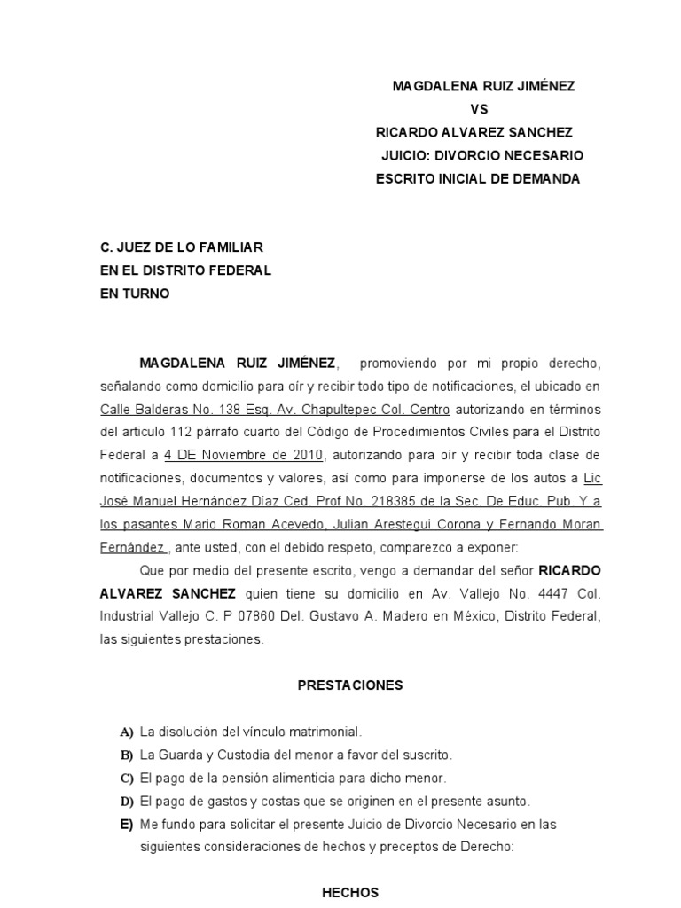 Demanda De Divorcio Necesario Con Hijos via es.scribd.com